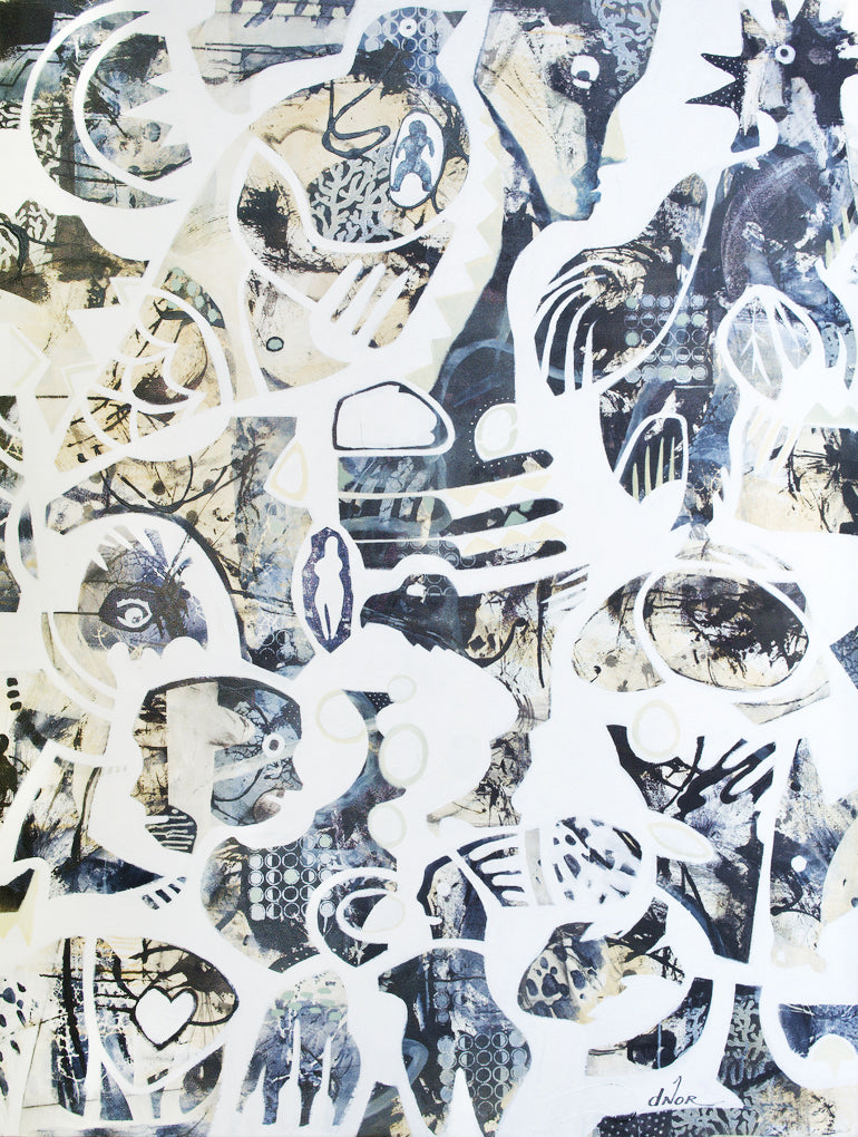 WALL SPACE GALLERY is proud to present Dominique Normand’s latest collection of abstract-figurative paintings and monoprints reflecting her adaptation to her new reality living in Ecuador. After years of exploring her own Metis roots and celebrating the spirit and wilderness of the Canadian North, Normand merges her past with influences from the living culture of Indigenous peoples of South America and the spirits of Ecuador’s Sierra Mountains. She turns to mysticism, spirituality, and the ‘sacred feminine’ to grapple with the upheaval of her new surroundings and tides of change.