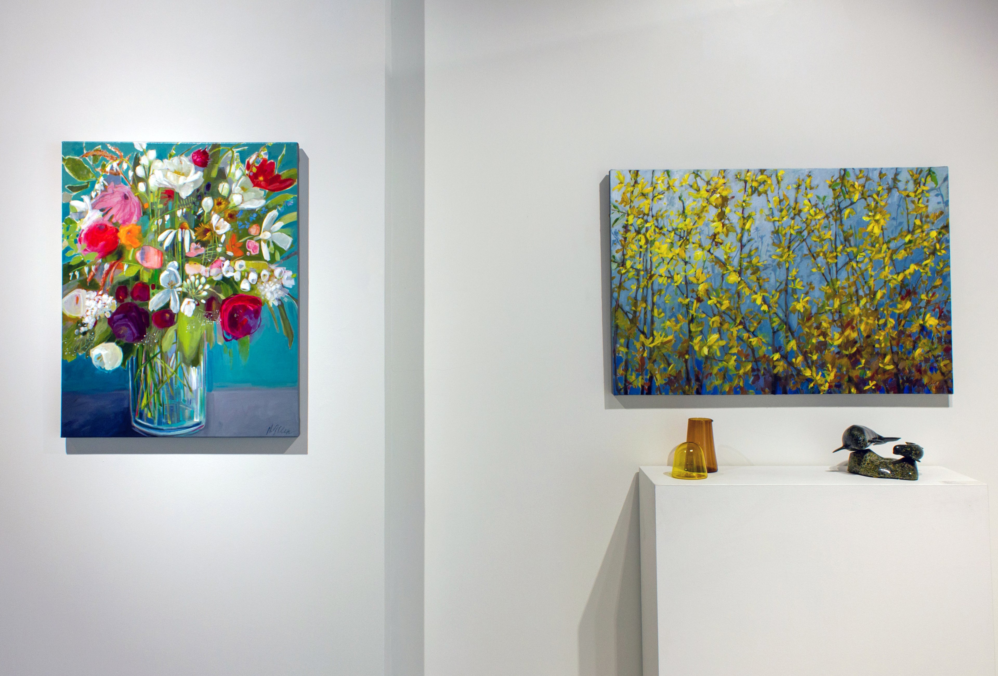 In Allen’s “Resolutions”, swaths of colourful petals vie for our attention, pulling our eye to and fro. Her palettes and free-form compositions, loosely rendered from life, temporarily freeze-frame the balance that can be found between forces if they communicate in unison; the functional order of chaos.