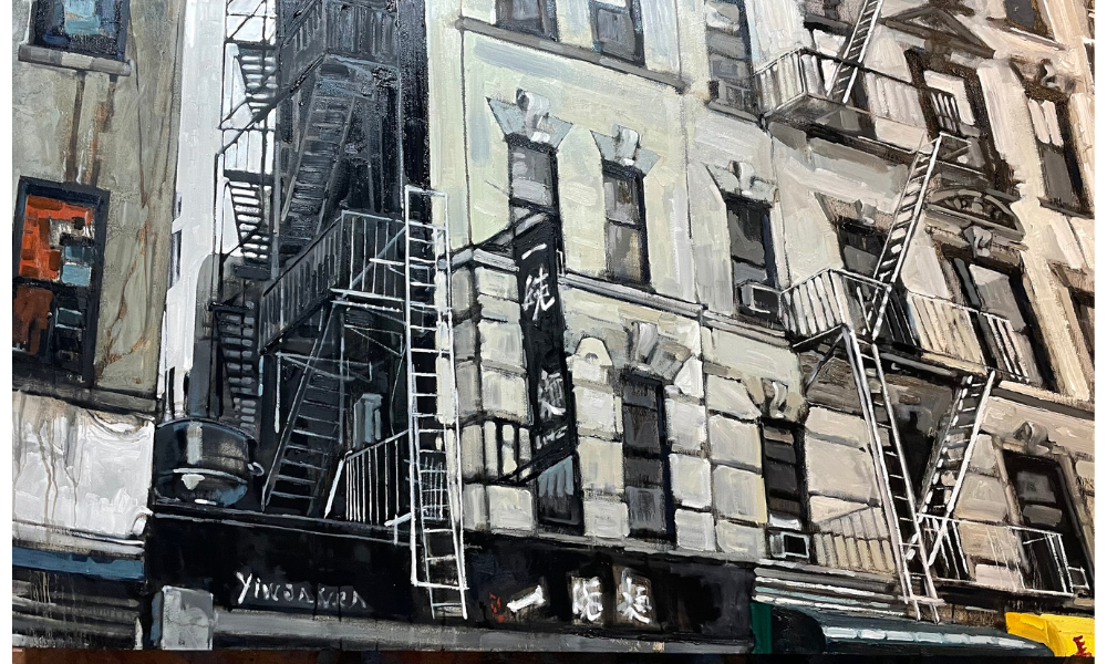 Capturing a sense of place; engaging with the idea that we are here now. These are the thoughts and concepts that motivate me towards a particular space and inspire a curiosity in that time and place. I seek a truth in the environment in which we live. I want to represent the spirit of the city. What happens in the shadows, and the shapes created by a cut of late afternoon light, all play out as the main elements of my compositions. Negative shapes in both sky and structure form the compositional backbone of my paintings. These create the balance that I believe is needed to put the viewer in a place of familiarity and in turn compose the narrative. You are now here and I want to leave you with this experience, for you to create and extend this narrative on your own.