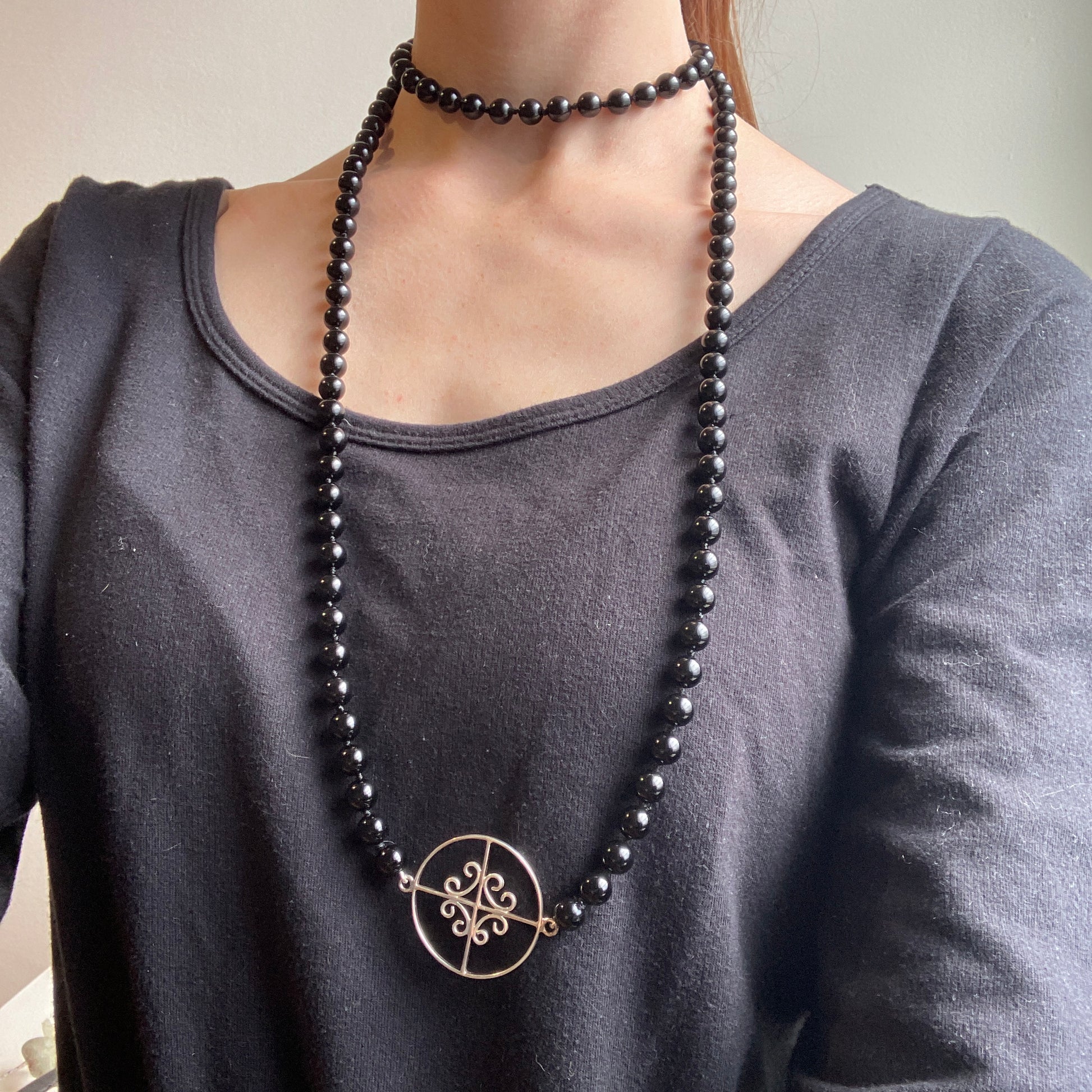 Sterling silver colonial bar pendant with polished onyx bead chain