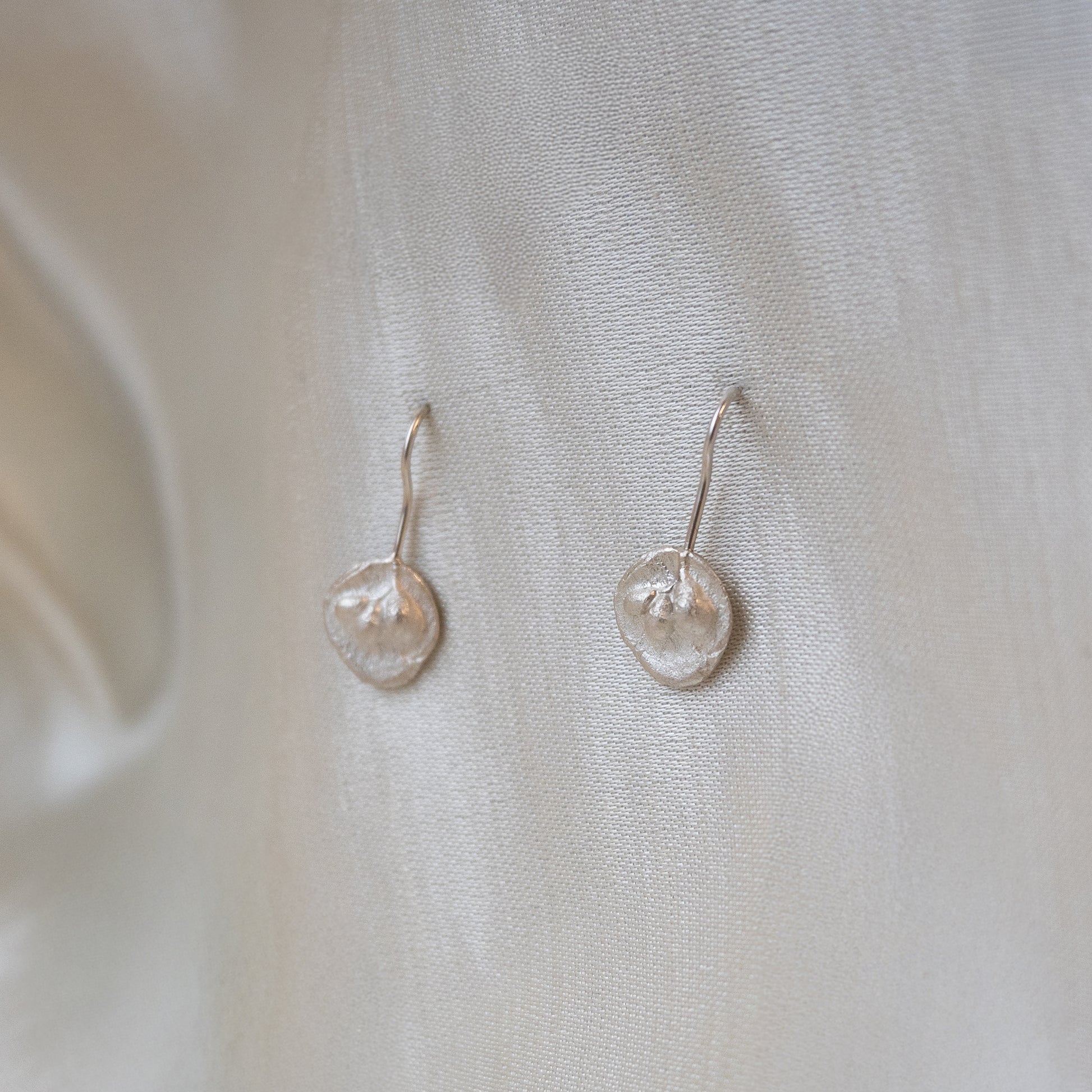 Sterling silver small floral talisman hook earrings with sterling silver findings