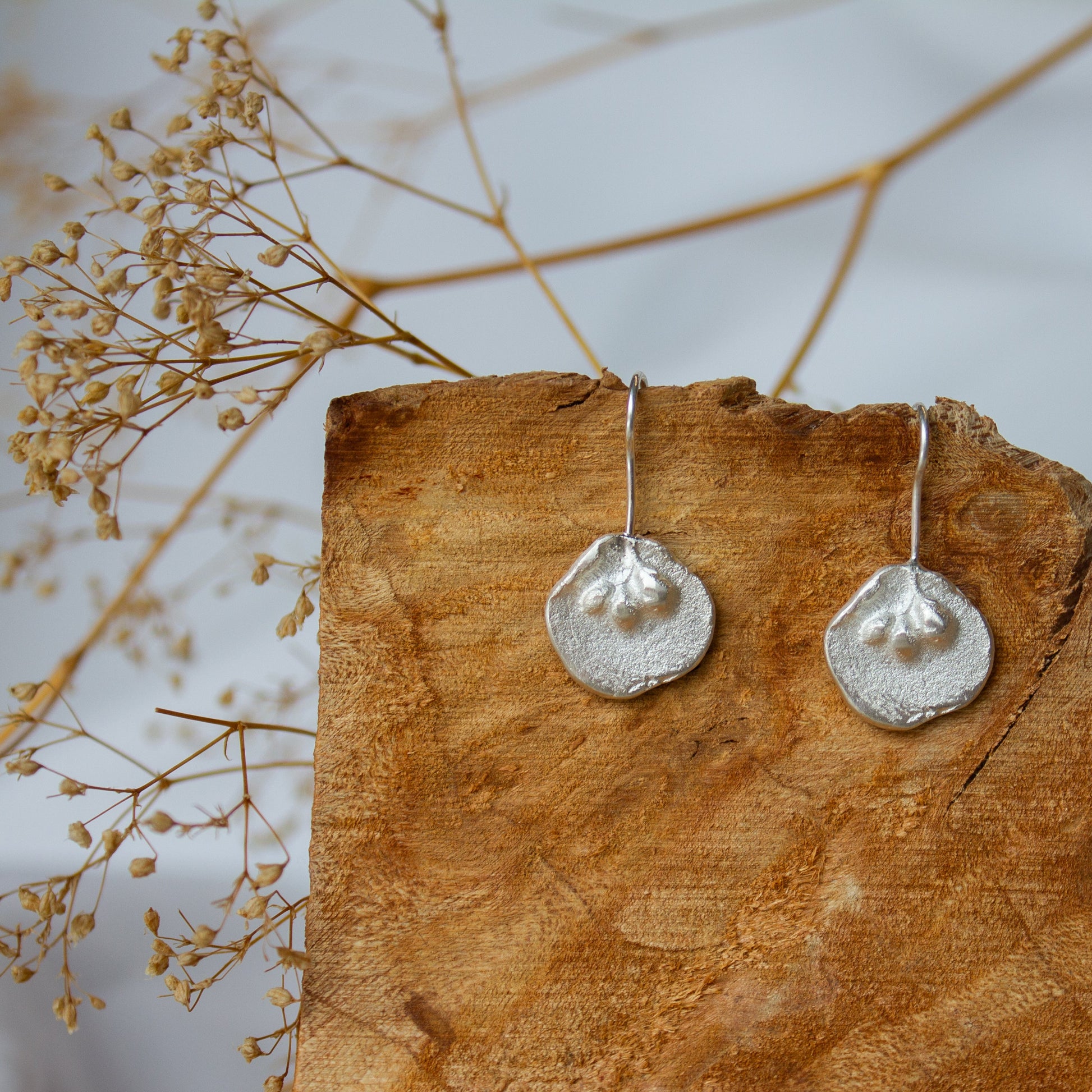 Sterling silver medium floral talisman hook earrings with sterling silver findings