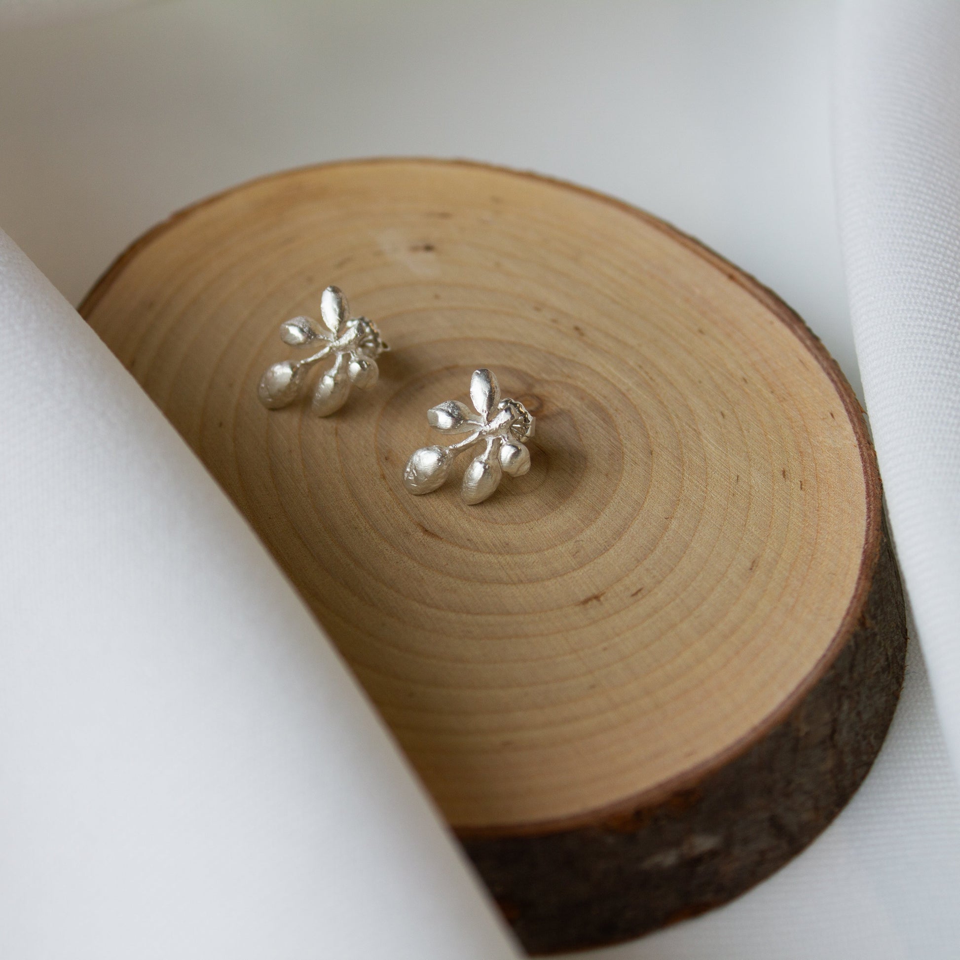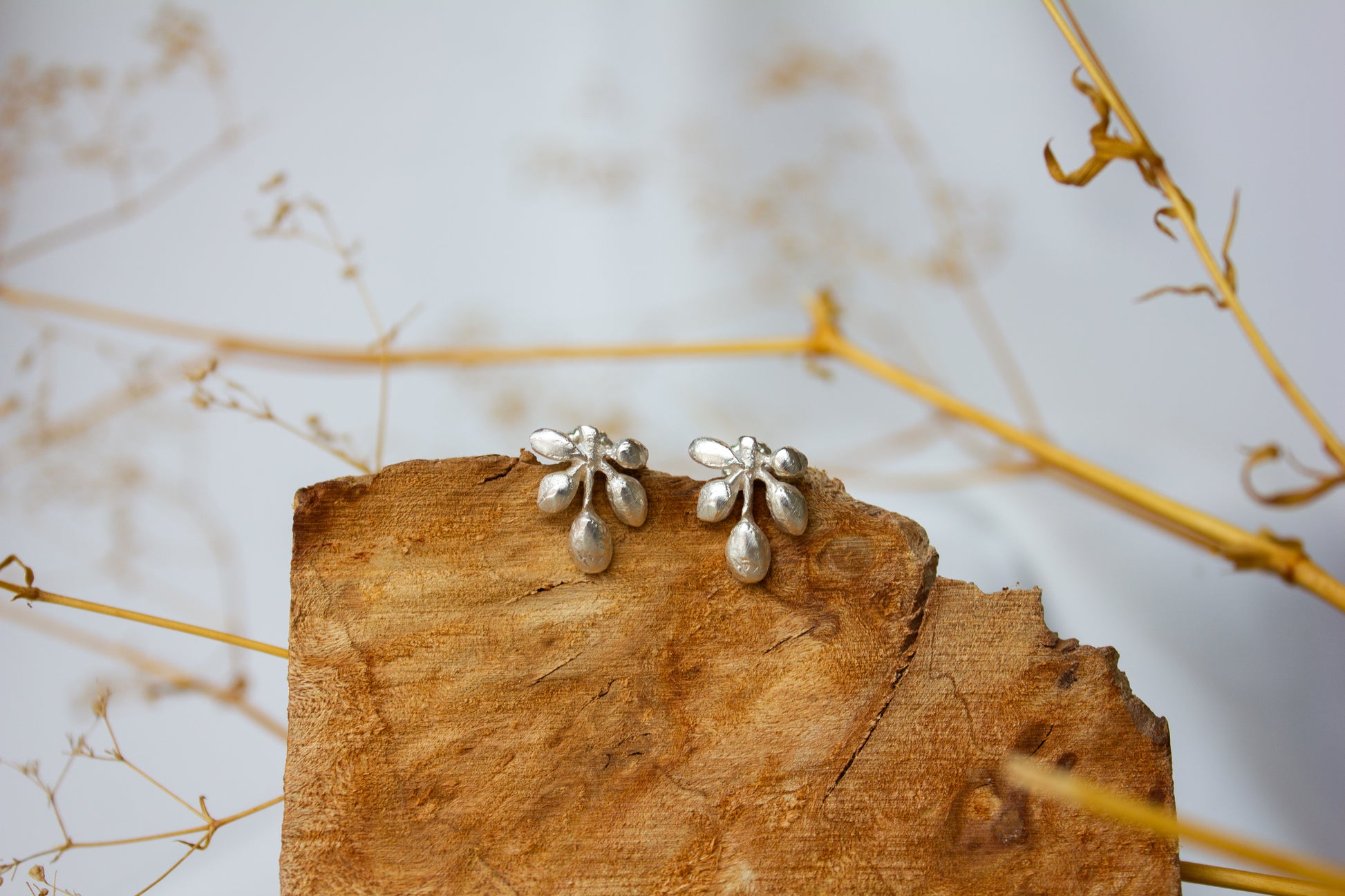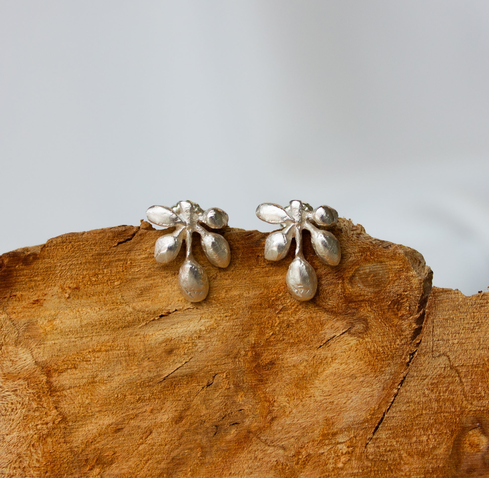 Sterling silver floral quintet stud earrings with sterling silver findings