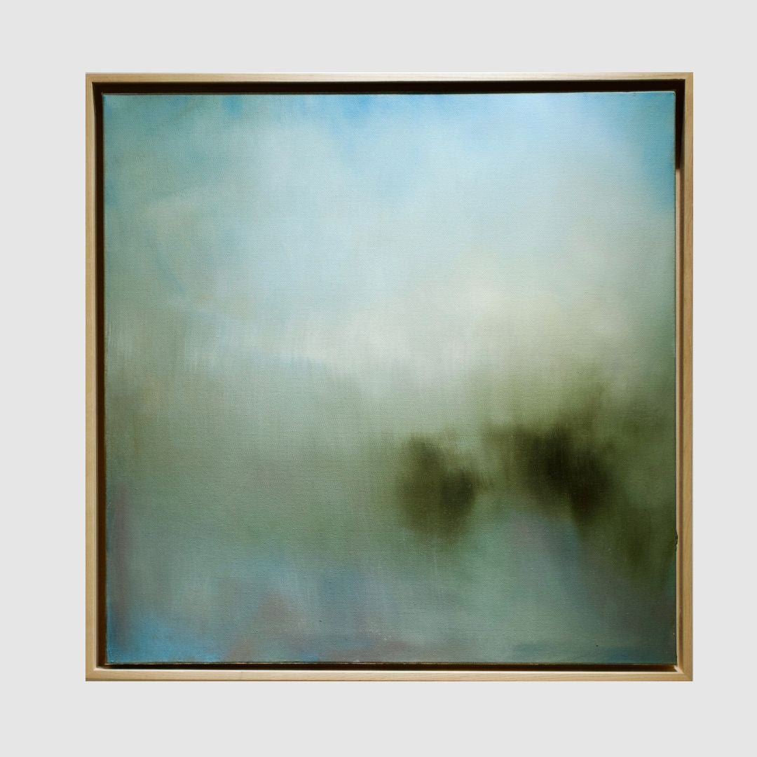 Framed in a raw ash floating frame by the artist