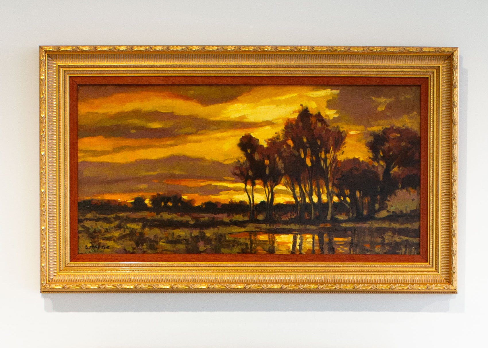 Framed in a gold ornate frame with a brown wood enhancer by Wall Space