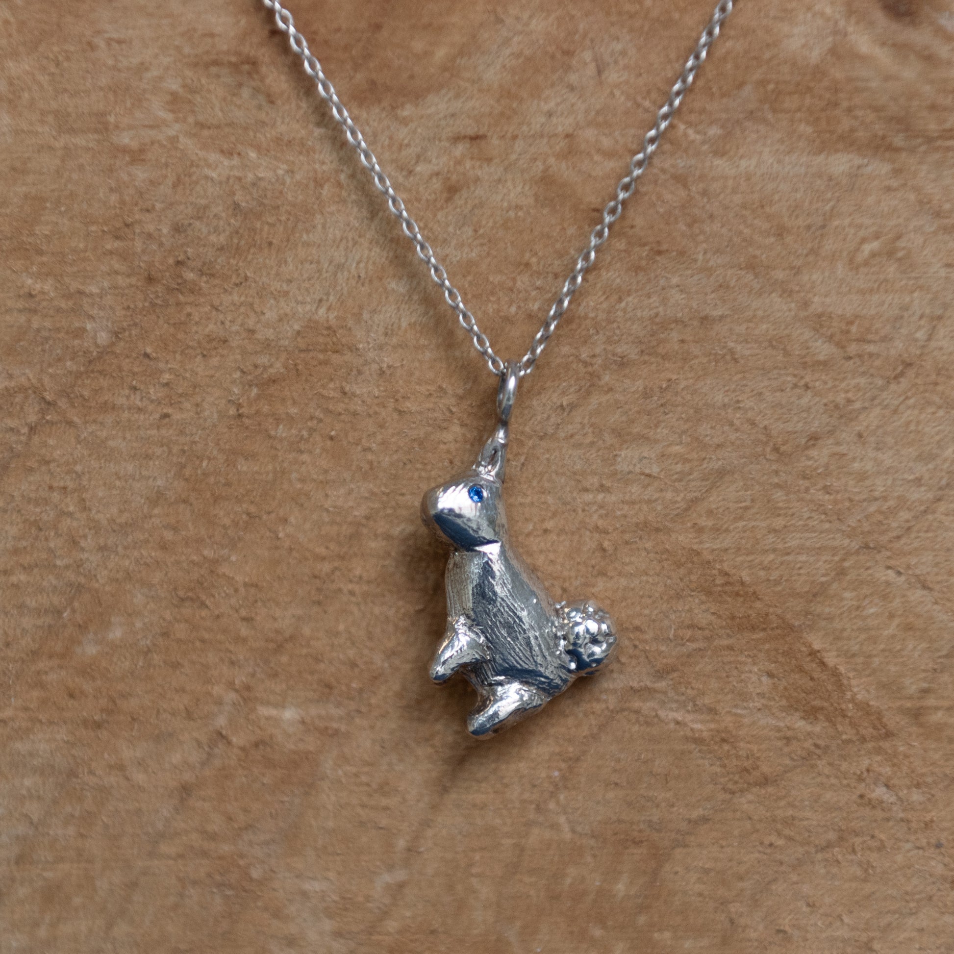 Sterling silver bunny necklace with sapphire eyes