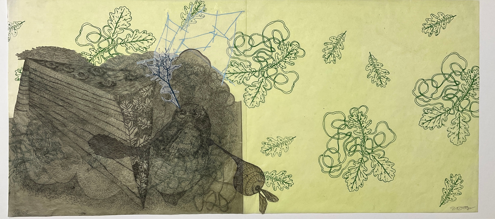 Etching, screenprint, monoprint, collage on gampi paper