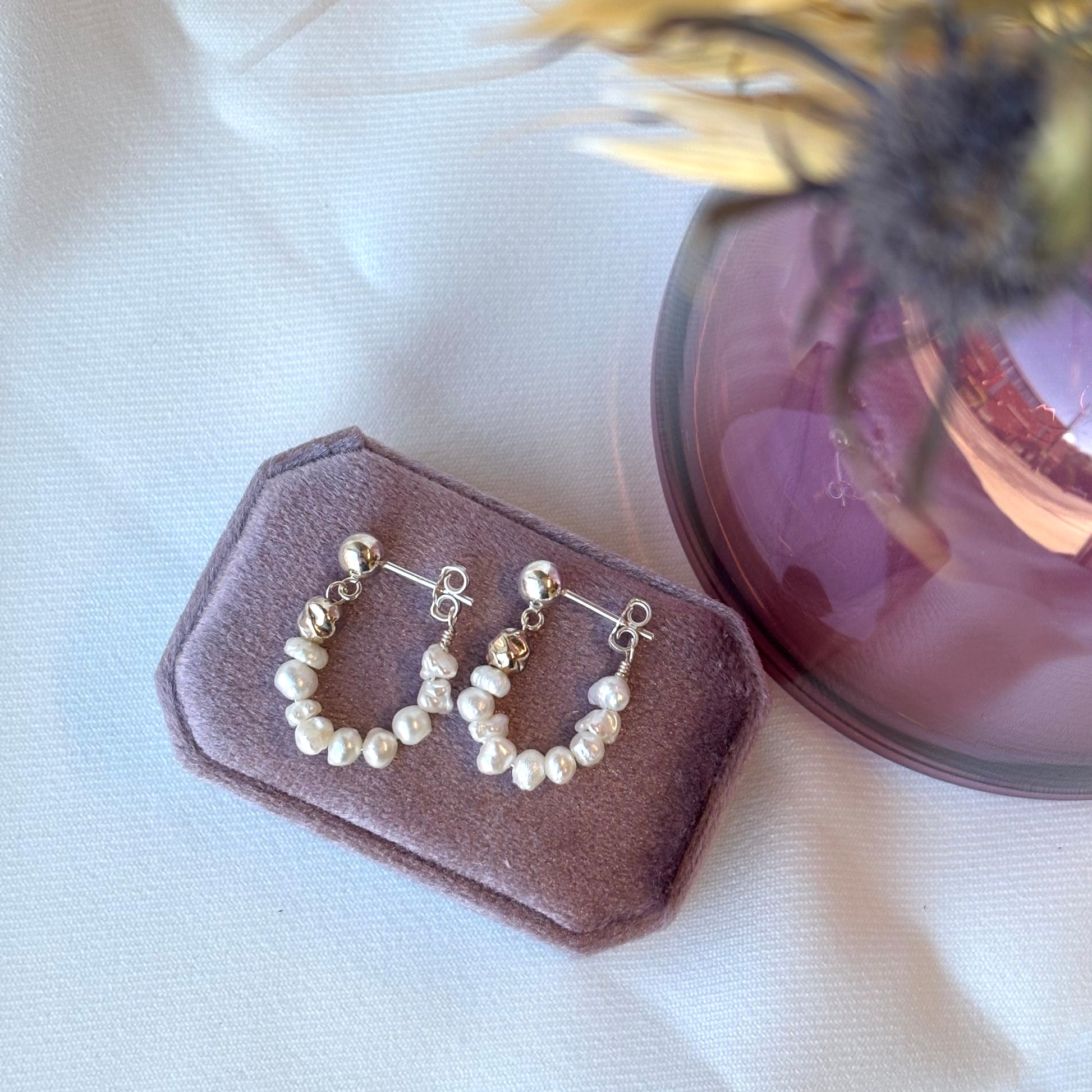 Freshwater seed pearl U shaped hoop theader earrings on sterling silver 5 mm ball studs