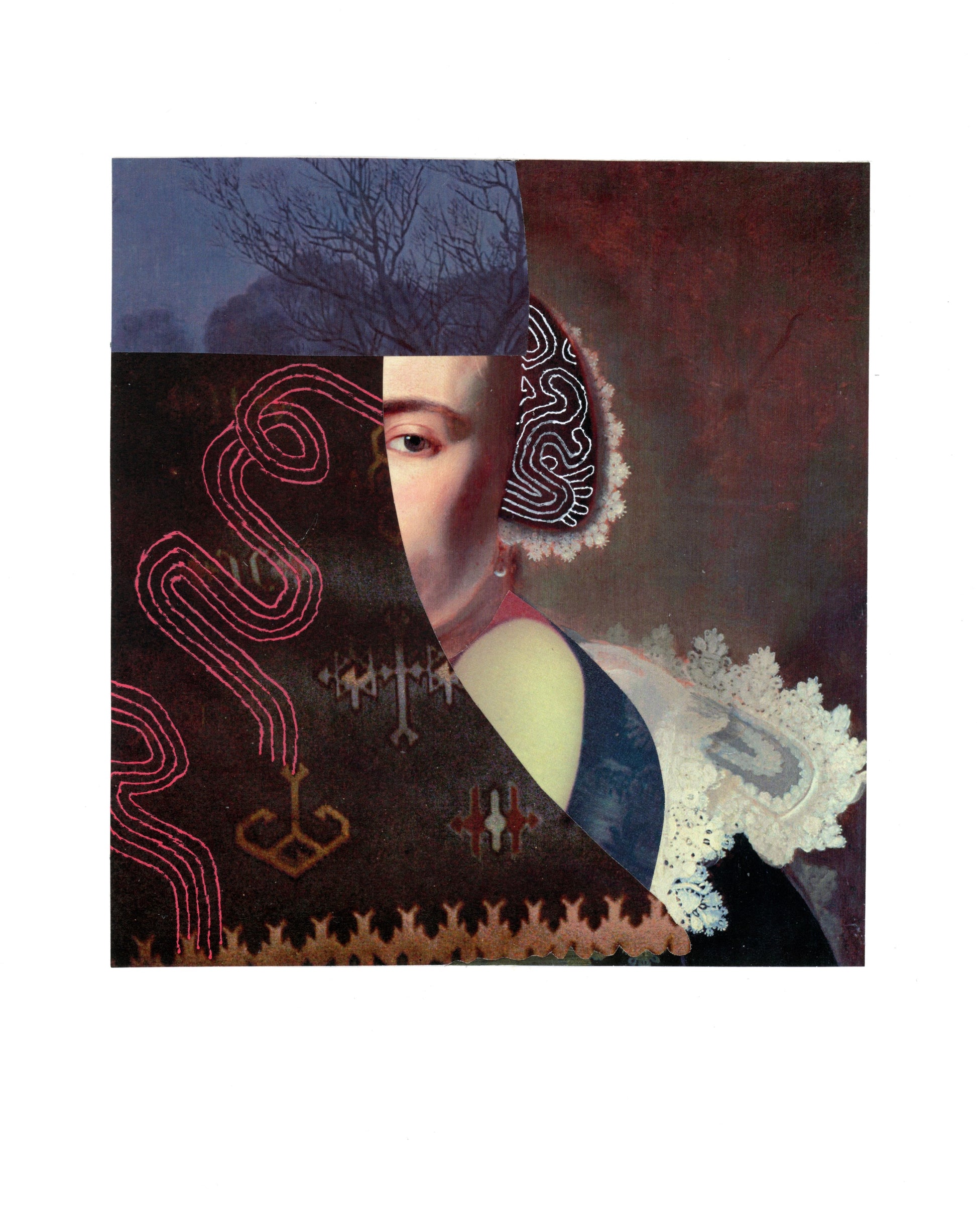 Collage and gel pen on watercolour paper