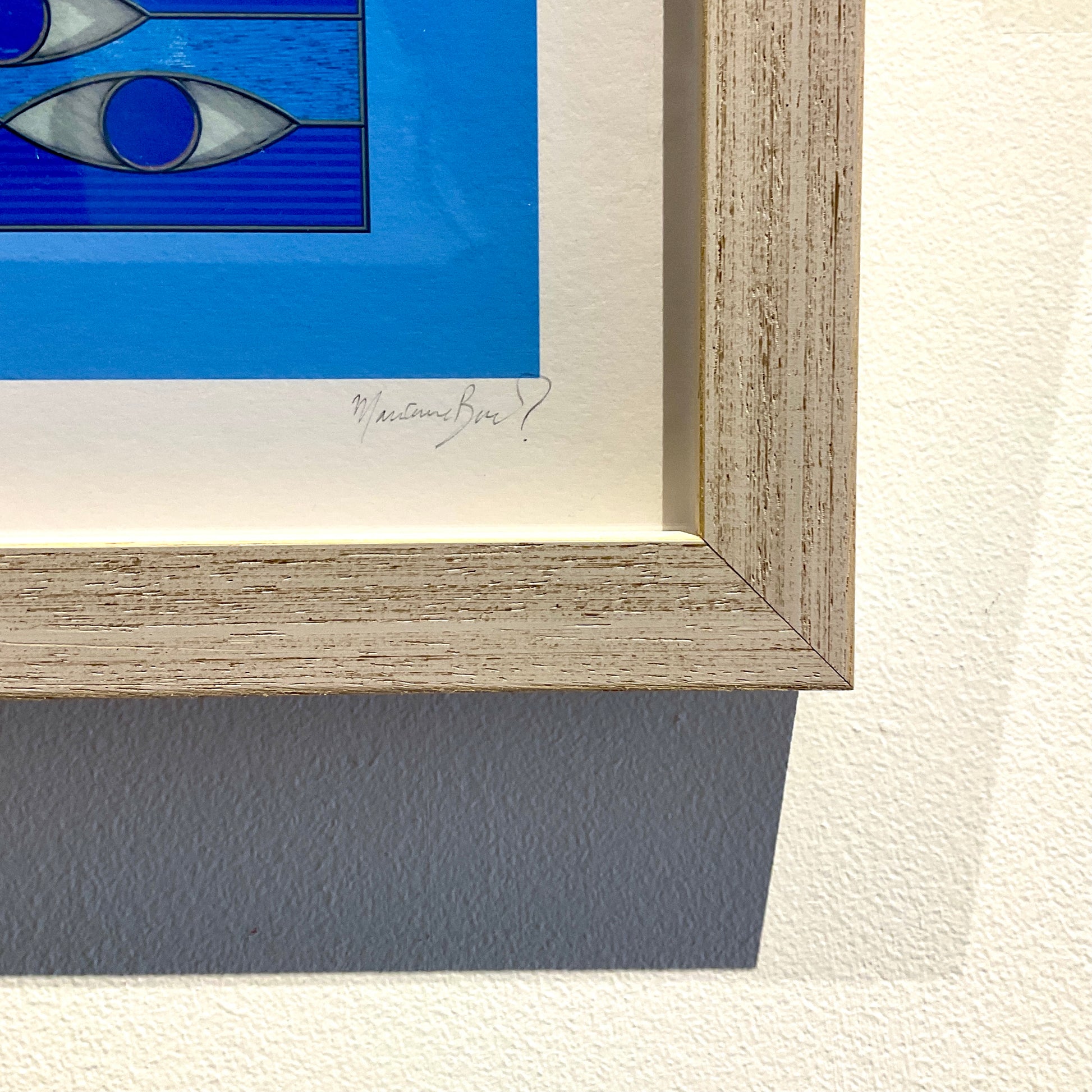 Framed in an antique white stain frame with UV glass by Wall Space