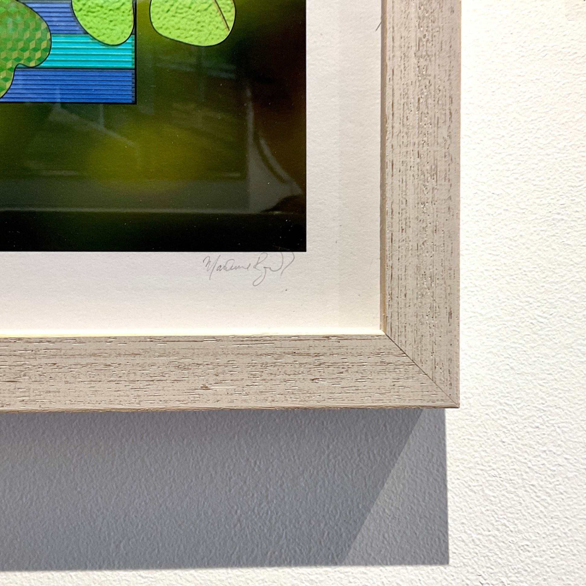 Framed in an antique white stain frame with UV glass by Wall Space
